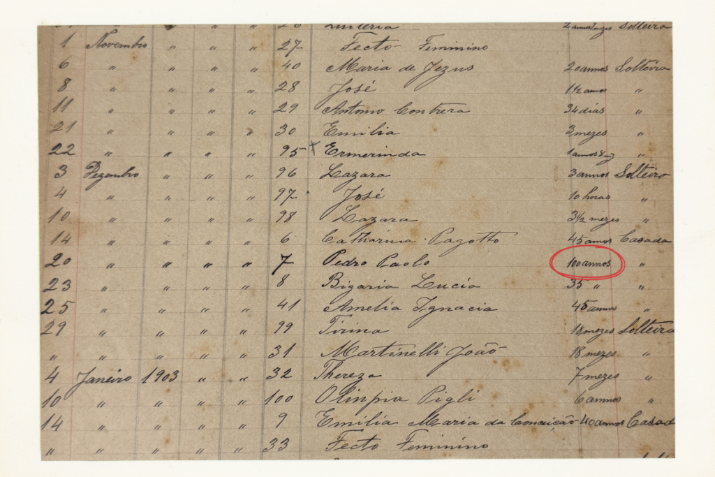 20 de dezembro de 1902 – Pedro, registrado com 100 anos de idade.