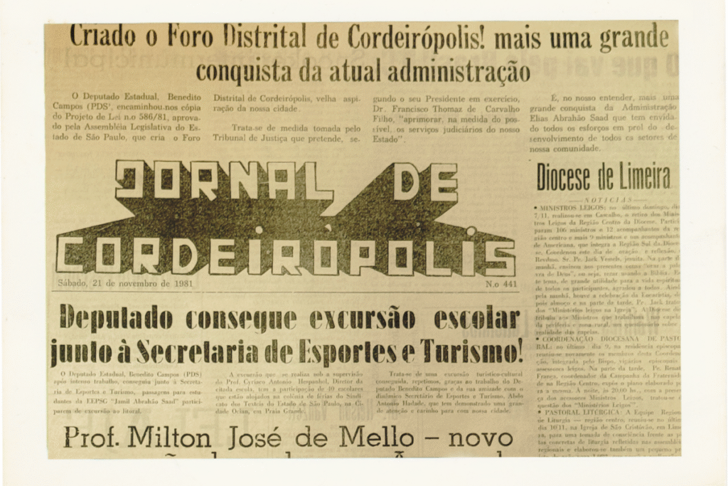 📍 Fonte: Jornal de Cordeirópolis – Edição de 1981