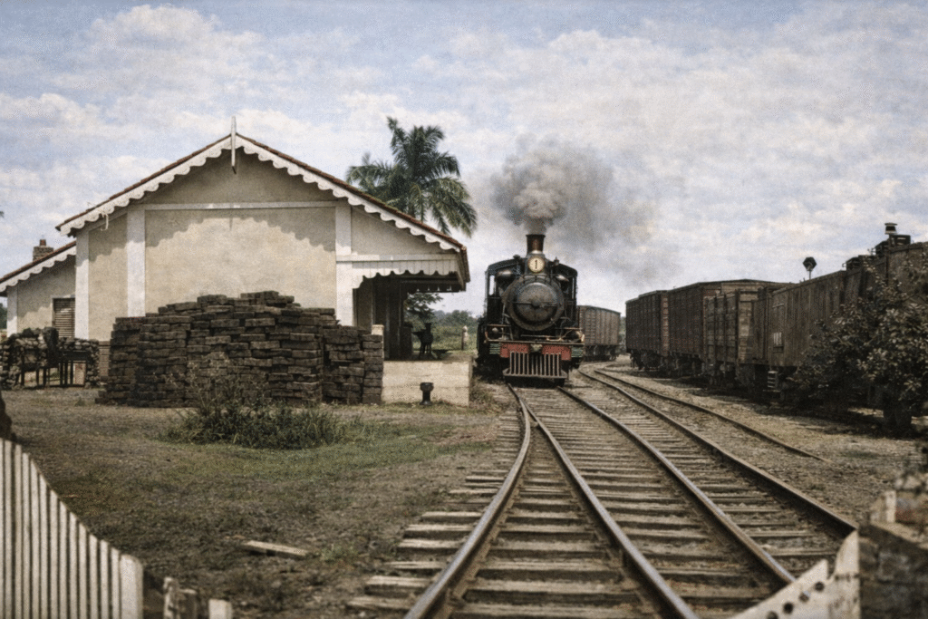Essa fotografia, hoje preservada nos acervos históricos, representa um testemunho precioso de uma época que se encerrava o fim da era das locomotivas a vapor naquela região.